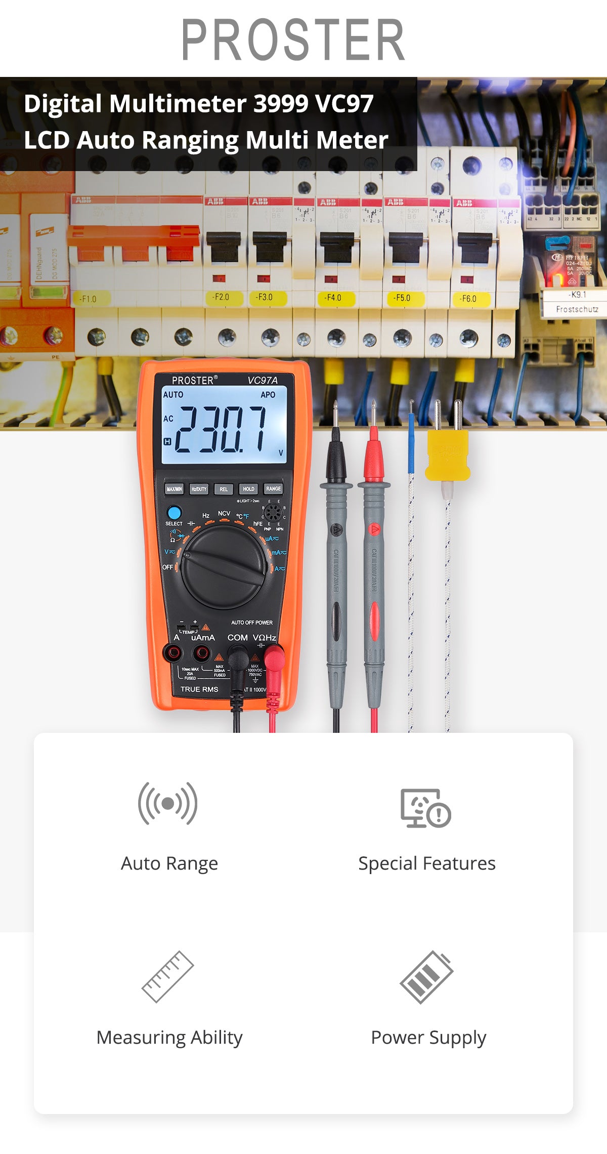 Proster Digital Multimeter 3999 VC97 LCD Auto Ranging Multi Meter CAT II