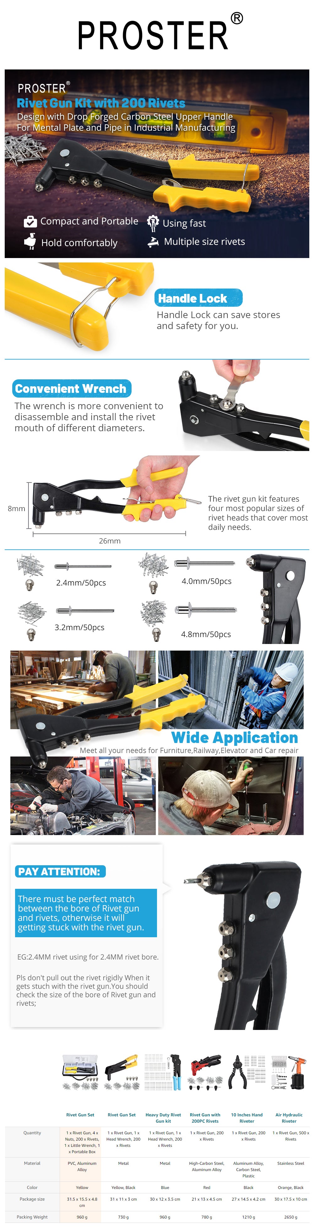 Proster Heavy Duty Rivet Gun Set with 200 Rivets