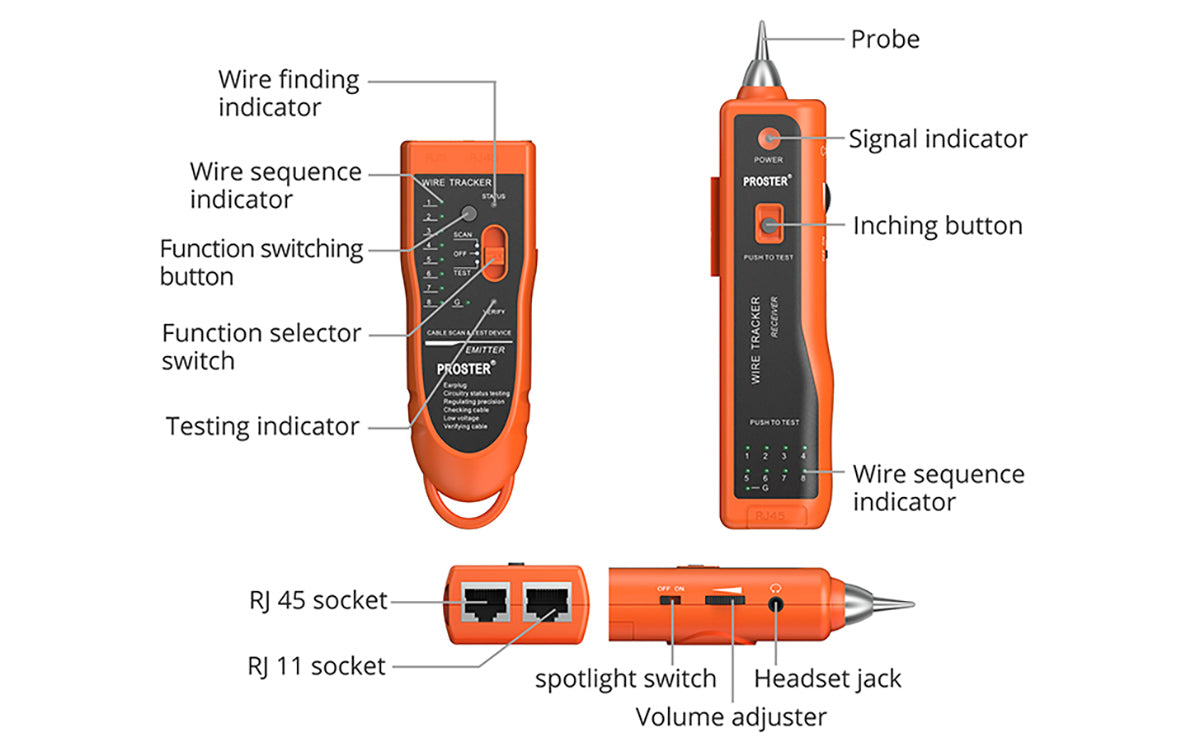 Proster Network Tester XQ 350 Handheld Cable Tracer with Earphone