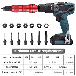Proster Riveter Nut Gun Adapter Rivet Gun Drill Adapter Low Gear Drill Tool Kit